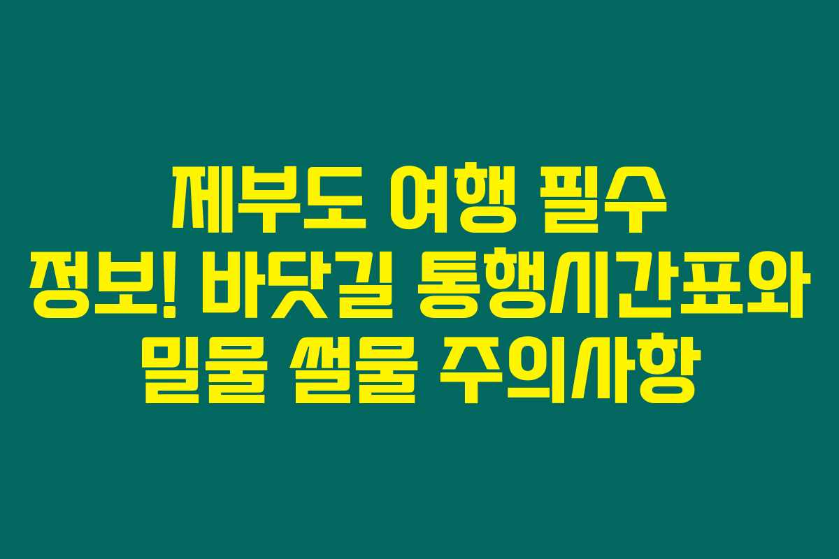 날씨 조건도 중요합니다. 바람이 세거나 비가 오는 날에는 바닷길 통행이 어려울 수 있습니다. 출발하기 전에 기상 예보를 확인하고, 안전한 여행을 위해 항상 주의를 기울여야 합니다.