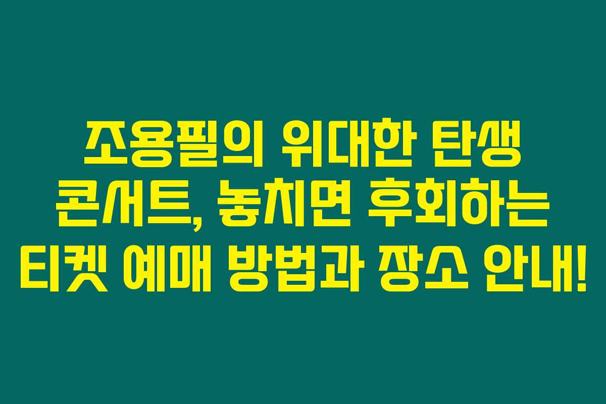 조용필의 팬이라면 이번 조용필, 위대한 탄생 콘서트 소식은 반드시 확인해야 할 정보에요. 한정된 좌석이고 티켓 경쟁이 치열할 것으로 예상되니, 이 글을 통해 예매 및 일정, 장소를 자세하게 안내해드릴게요.