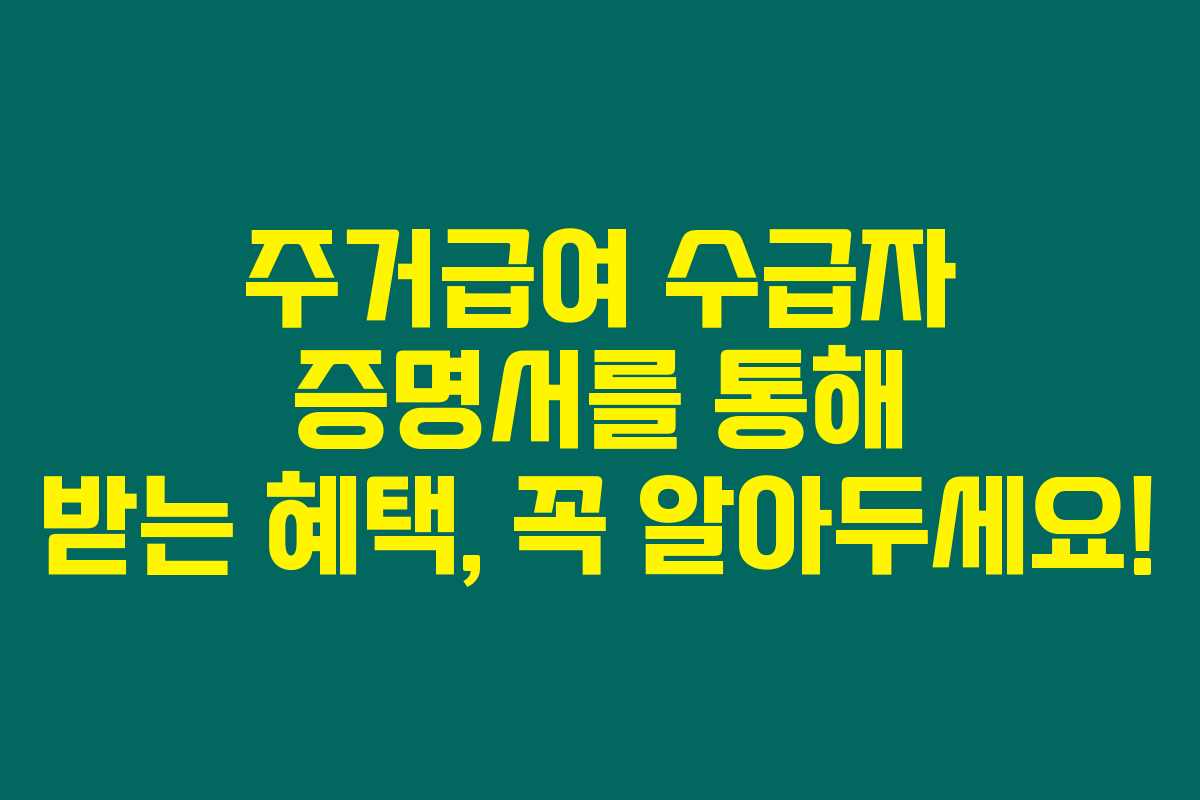 제가 직접 확인해본 결과 주거급여 수급을 통해 얻을 수 있는 다양한 혜택과 증명서 발급 절차에 대해 상세히 알려드릴게요. 모든 저소득층 분들에게 소중한 이 제도에 대해 함께 알아보세요.