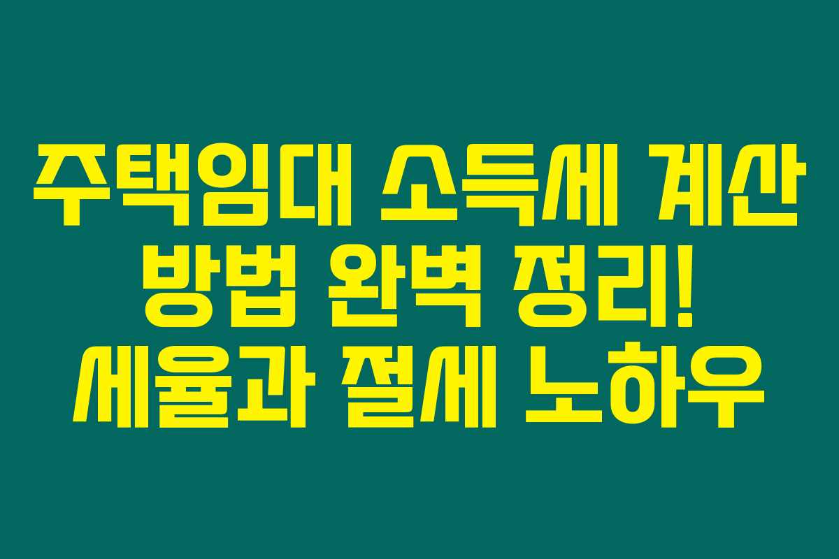 주택임대 소득세 계산 방법 완벽 정리! 세율과 절세 노하우