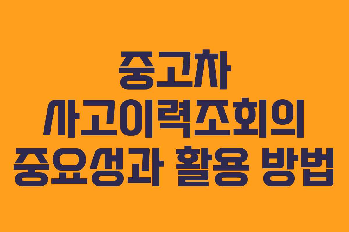 중고차 구매를 고려할 때, 사고 이력 조회는 필수적인 과정입니다. 차량의 안전성과 상태를 확인하기 위해 사고 이력을 정확히 파악해야 합니다.