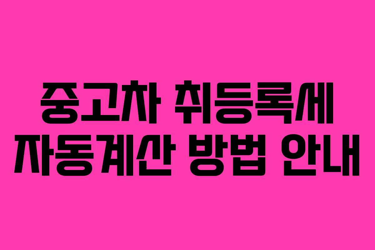 중고차 구매 시 차량 가격 외에도 다양한 세금이 발생하는데, 이 중 취등록세는 필수적으로 고려해야 할 항목입니다. 중고차의 취등록세는 연식, 주행 거리, 사고 여부 등에 따라 달라지며, 따라서 정확한 계산이 필요합니다. 이제 중고차 취등록세를 쉽게 계산할 수 있는 방법을 소개하겠습니다.