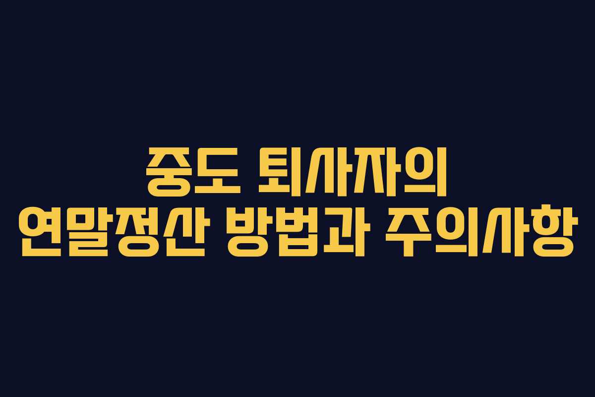 중도퇴사자는 12월 31일 이전에 퇴사할 경우, 퇴직일까지의 급여를 합산하여 연말정산을 진행해야 합니다. 이 과정은 근로자가 아닌, 사업주가 진행하게 되며, 퇴사 후에도 관련된 세무 업무를 소홀히 하지 않아야 합니다.