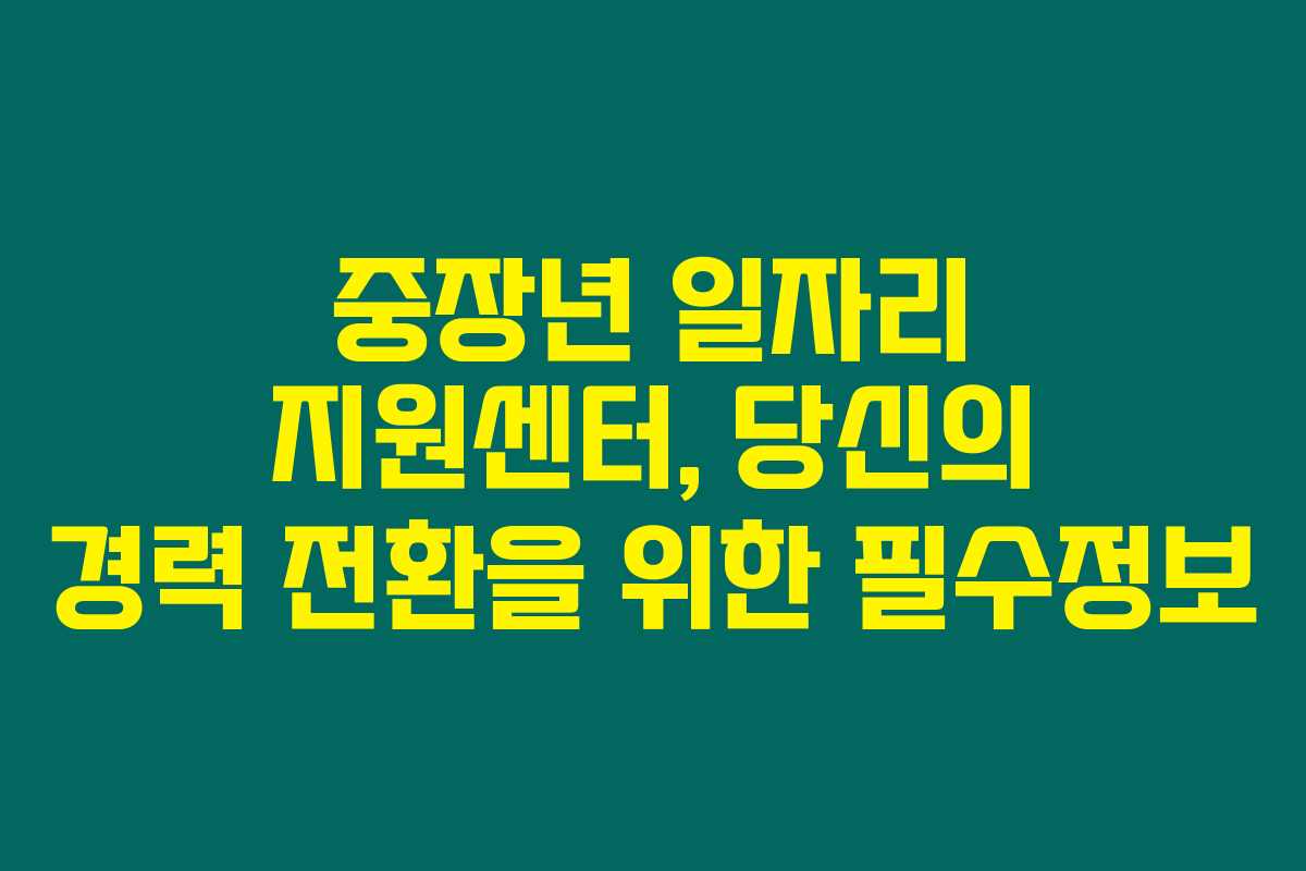 전직을 고민하고 계신 중장년층이라면 이 글을 꼭 읽어보세요. 중장년 일자리 지원센터에서는 여러분의 경력 전환을 돕기 위해 다양한 서비스를 제공합니다. 중장년 내일센터에서 제공하는 다양한 지원 프로그램과 더불어, 퇴직 후 안정적인 일자리를 구하기 위한 팁과 정보도 준비했습니다.