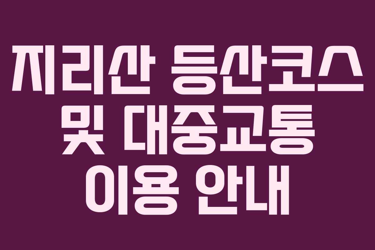 지리산은 아름다운 자연과 다양한 등산로로 유명한 명산입니다. 본 글에서는 지리산의 주요 등산 코스와 대중교통 이용 방법을 상세히 안내합니다.