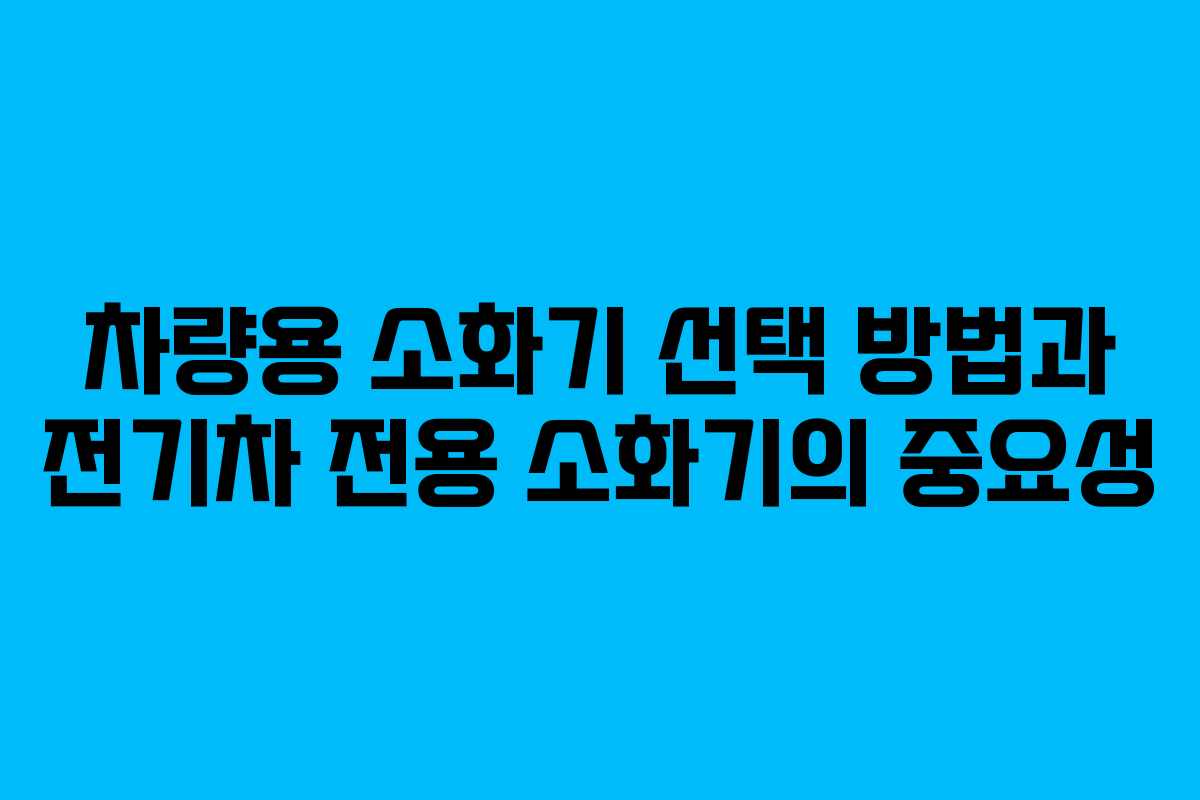 차량용 소화기는 안전한 운전을 위한 필수 장비로, 종류와 용량, 전기차 전용 소화기의 필요성을 잘 이해하고 선택하는 것이 중요합니다. 정기적인 유지관리와 인증된 제품 선택을 통해 더 안전한 차량 운행을 할 수 있습니다.