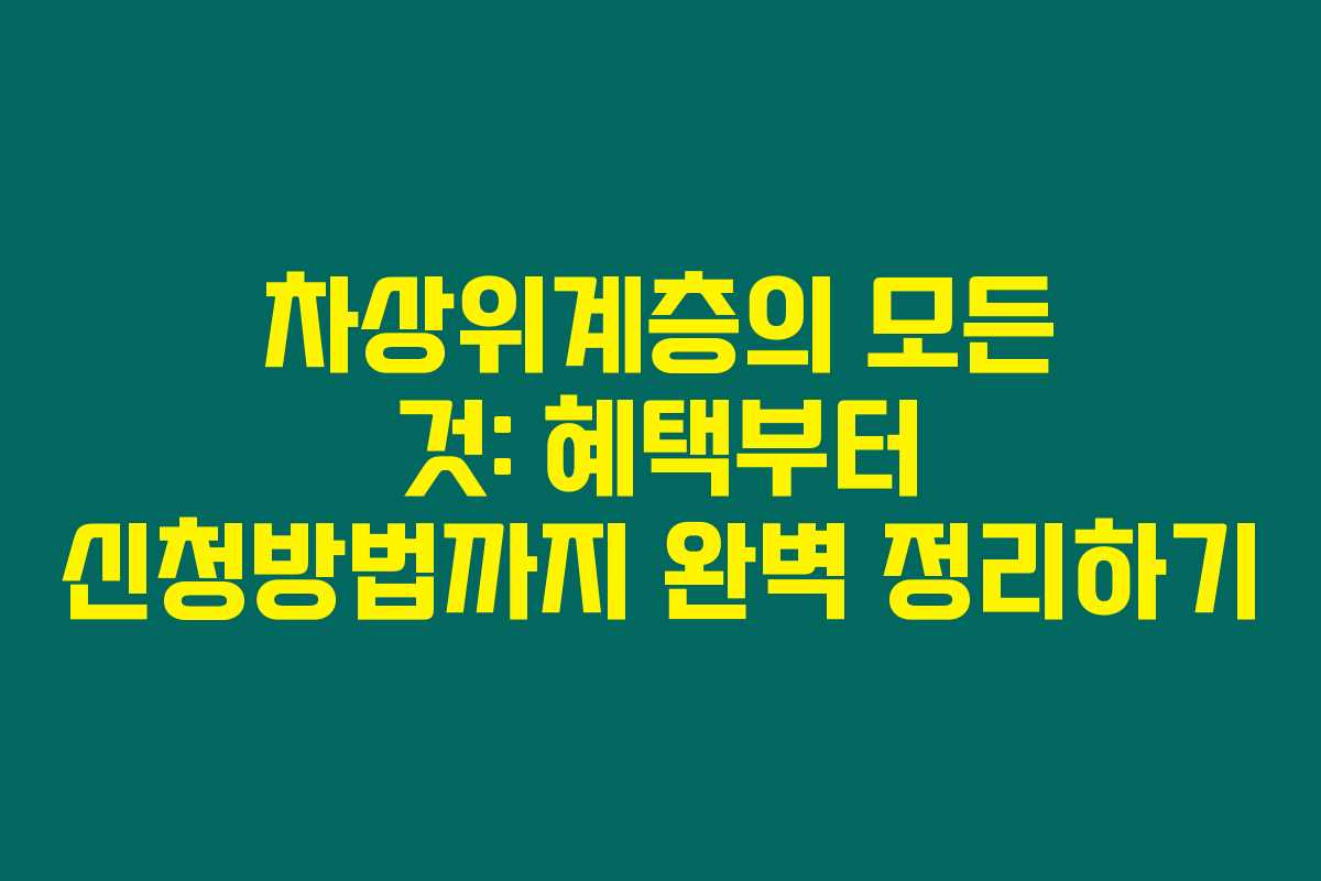 제가 직접 알아본 바로는, 차상위계층은 경제적으로 어려운 상황에 처한 가구들에게 다양한 정부의 복지 혜택을 제공하는 매우 중요한 정책입니다. 많은 분들이 이 제도를 잘 모르고 계셔서 제가 경험한 내용을 바탕으로 차상위계층의 혜택, 조건 및 신청방법에 대한 완벽 가이드를 작성해 보았어요. 아래를 읽어보시면, 실제로 필요한 도움을 받을 수 있는 방법들을 알게 될 것입니다.