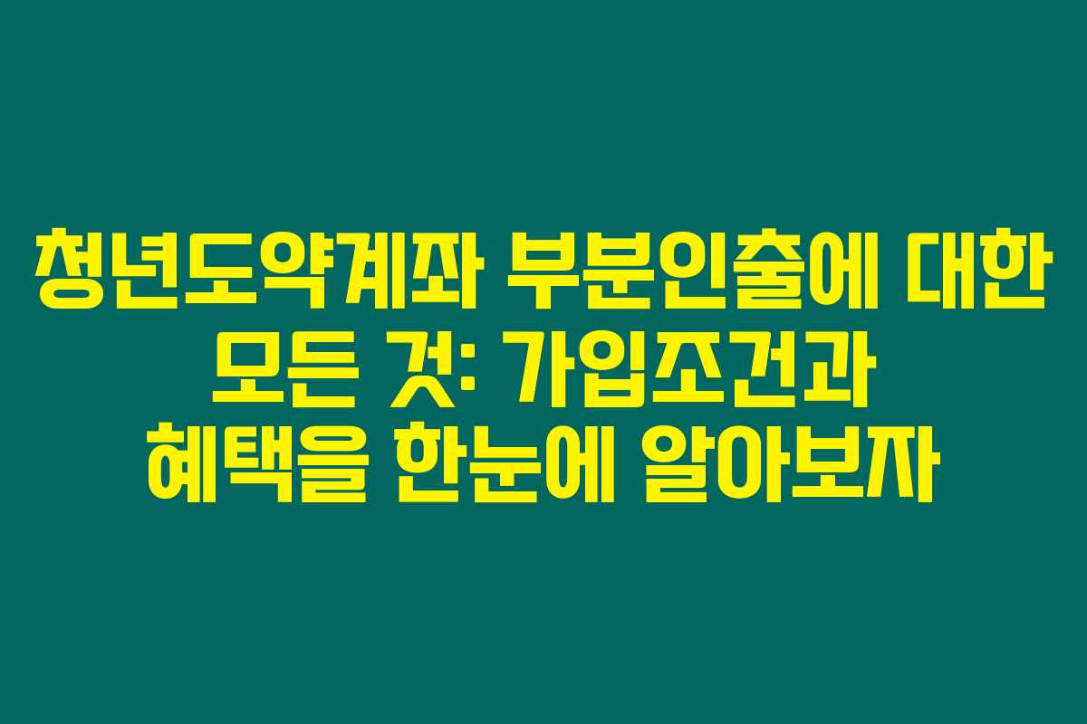 청년도약계좌의 부분인출 기능은 청년들에게 소중한 재정적 자립을 돕는 금융 제품이에요. 그렇다면 청년도약계좌가 어떤 상품인지, 가입조건과 혜택은 무엇인지 궁금하시죠? 아래를 읽어보시면 청년도약계좌의 모든 내용을 명확히 알 수 있을 거예요.