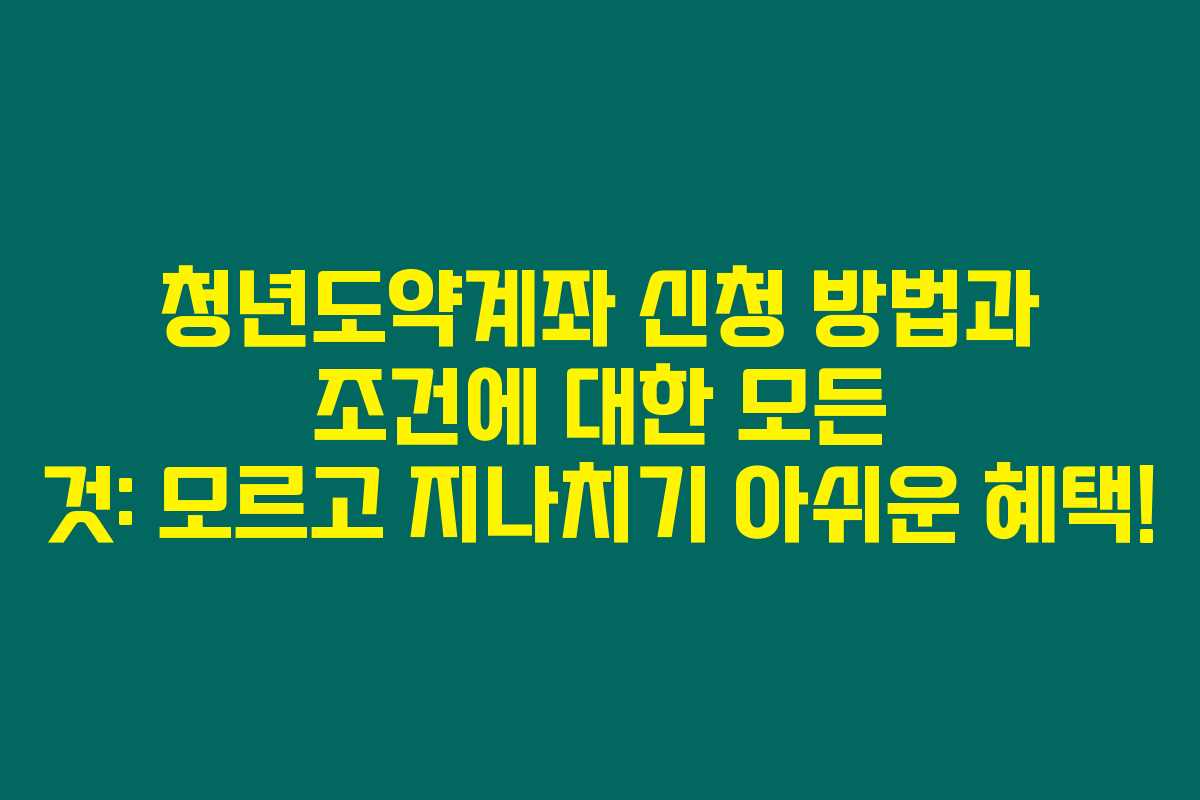 청년도약계좌 신청 방법과 조건에 대한 모든 것: 모르고 지나치기 아쉬운 혜택!