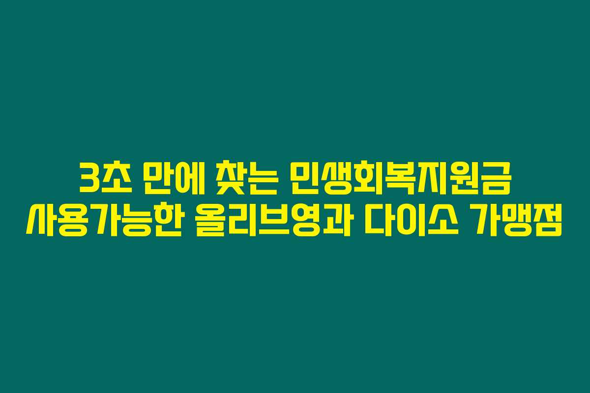 올리브영이나 다이소에서 민생회복지원금을 사용하고 싶다면 정말 간단히 가맹점을 확인할 수 있어요. 지역 선택만 잘하면 3초 이내에 원하는 가맹점을 찾아낼 수 있어요. 지금 당장 확인해 보시는 건 어떨까요?