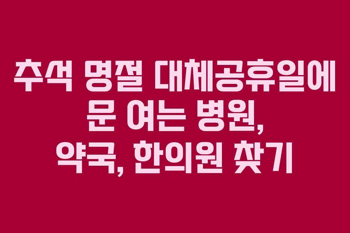 추석 명절 대체공휴일에 문 여는 병원, 약국, 한의원 찾기