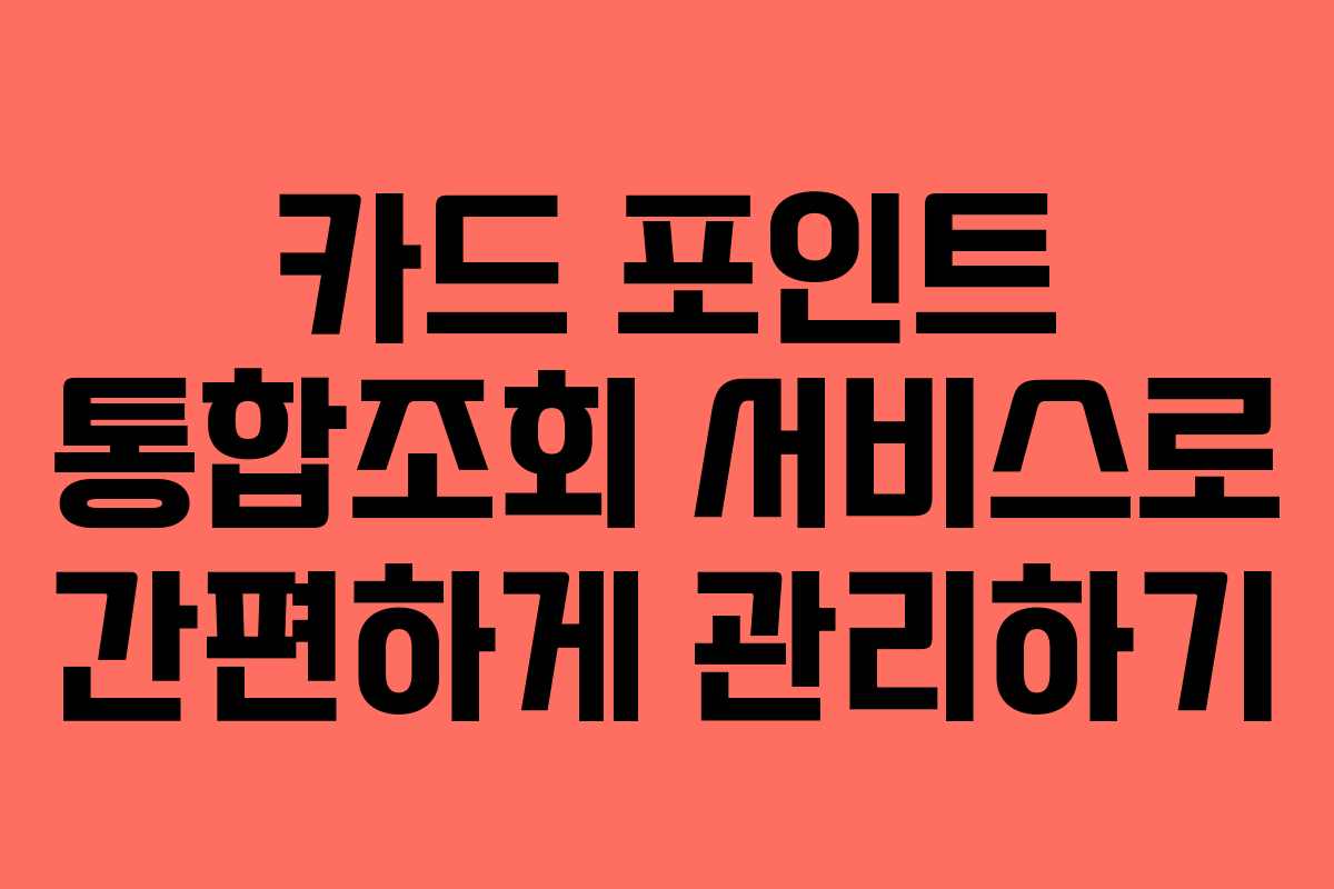 카드 포인트를 관리하는 것이 복잡하게 느껴지시나요? 이제 카드 포인트 통합조회 서비스를 통해 한 곳에서 쉽게 관리하고 확인할 수 있습니다. 이 서비스는 다양한 카드사의 포인트를 통합적으로 조회할 수 있는 유용한 도구입니다.