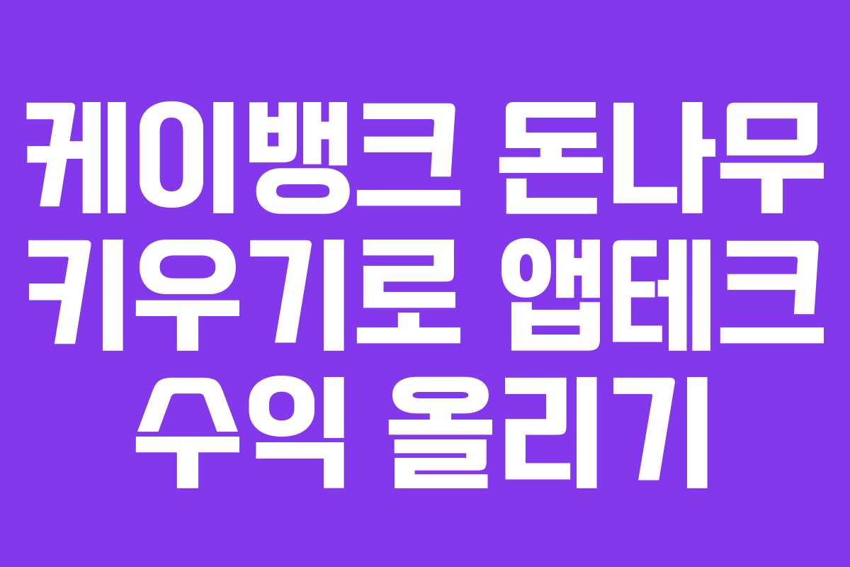 케이뱅크의 돈나무 키우기 서비스는 재미와 수익을 동시에 추구할 수 있는 혁신적인 앱테크 콘텐츠입니다. 이 서비스는 사용자가 매일의 작은 노력을 통해 현금을 벌 수 있도록 도와줍니다. 이 글에서는 돈나무 키우기를 통해 10만 원을 달성하는 방법과 유용한 팁, 주의사항 등을 정리해 보겠습니다.