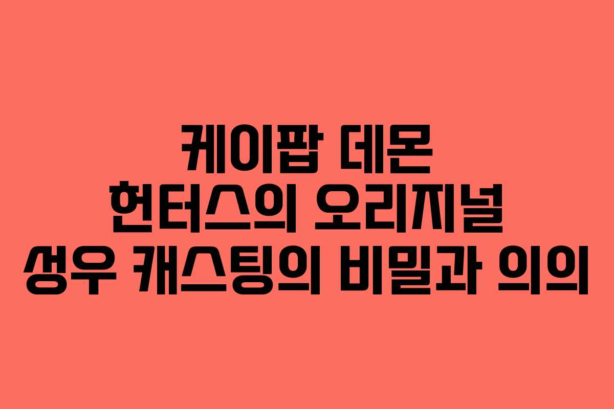 케이팝 데몬 헌터스의 오리지널 성우 캐스팅의 비밀과 의의