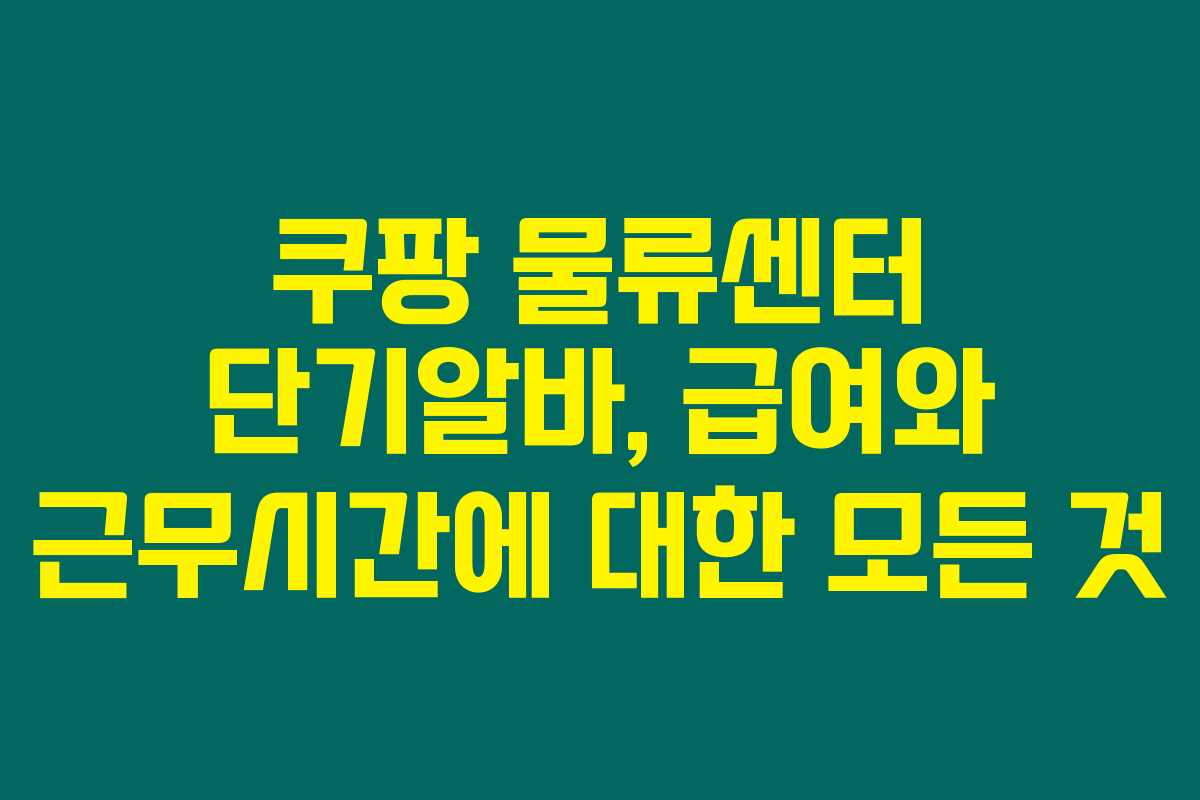 직장인으로 하루 24시간이 부족하게 느껴지는 요즘, 많은 사람들이 쿠팡 물류센터 단기알바를 생각하고 있습니다. 이 글을 통해 해당 알바의 급여와 근무시간, 그리고 다양한 정보들을 상세히 알아보시길 바랍니다.