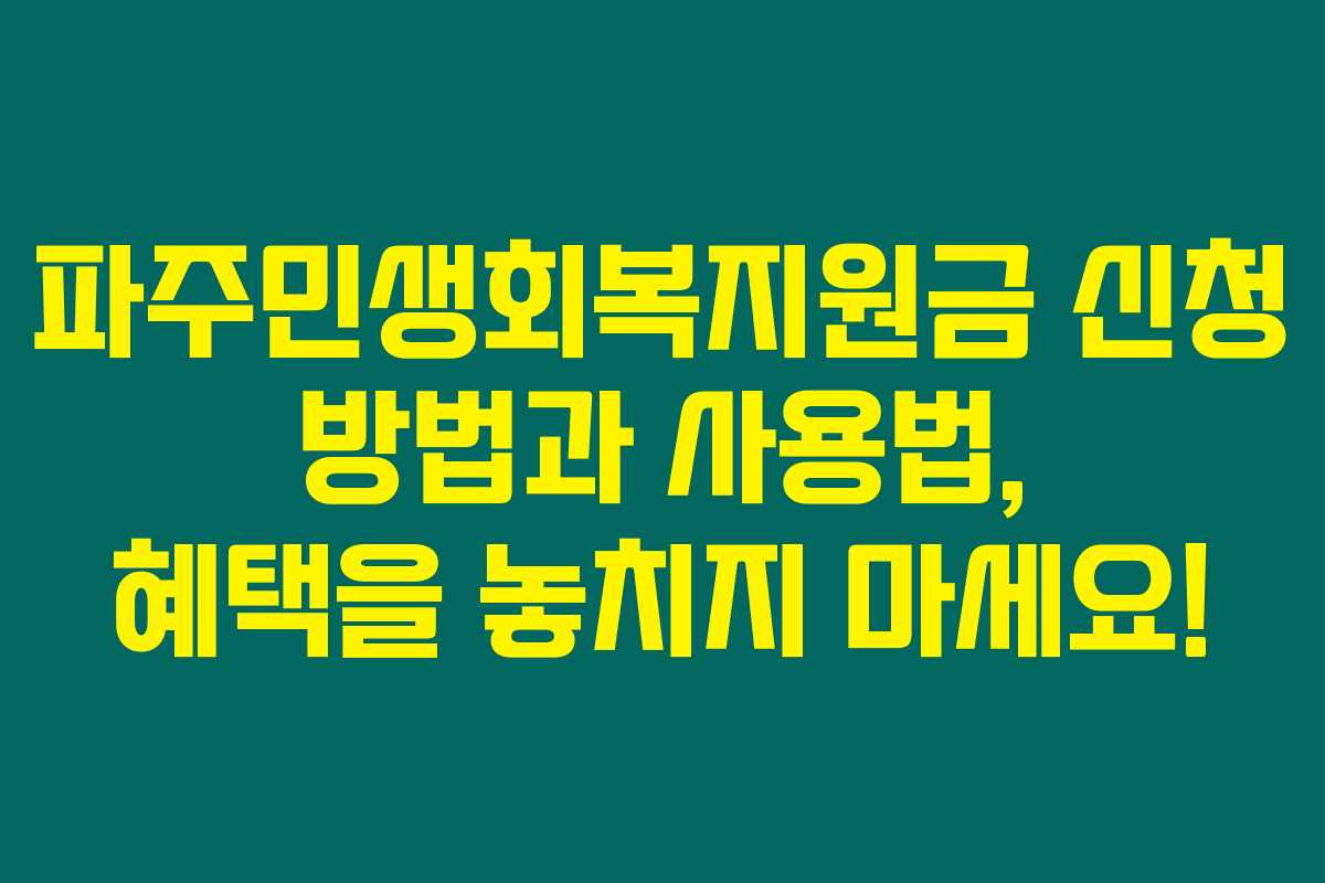 제가 직접 알아본 바로는 경기도 파주에서는 시민들의 생활안정과 소비 진작을 위해 파주민생회복지원금을 지급합니다. 이 지원금을 통해 경제적 어려움을 덜고 명절을 더욱 풍요롭게 보낼 수 있는 기회를 제공받을 수 있어요. 아래를 읽어보시면 이 지원금의 신청 방법, 기간, 사용법에 대한 자세한 정보를 확인할 수 있습니다.
