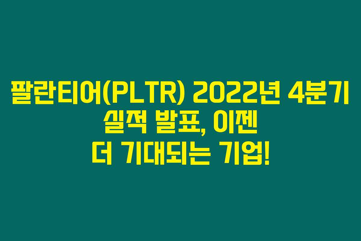 팔란티어(PLTR) 2022년 4분기 실적 발표, 이젠 더 기대되는 기업!
