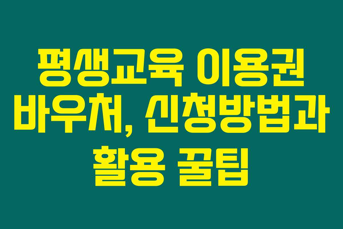 제가 직접 경험해본 바로는, 평생교육 바우처의 신청은 온라인으로 가능하여 매우便利해요. 자격 요건에 따라 신청할 수 있으며, 신청은 다음과 같은 절차를 따릅니다: