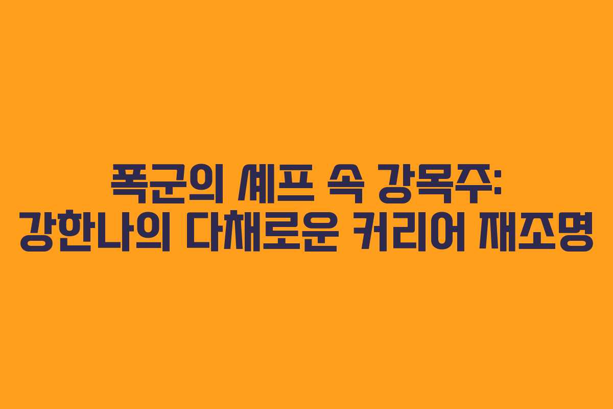 - 2025년 신작 드라마 폭군의 셰프에서 강목주 역으로 다시 한류 드라마 팬들 앞에 설 예정이며, 타임슬립과 가상역사물이 주도하는 플롯에서 강한나의 강렬한 연기력이 주된 관전 포인트로 기대됩니다.
