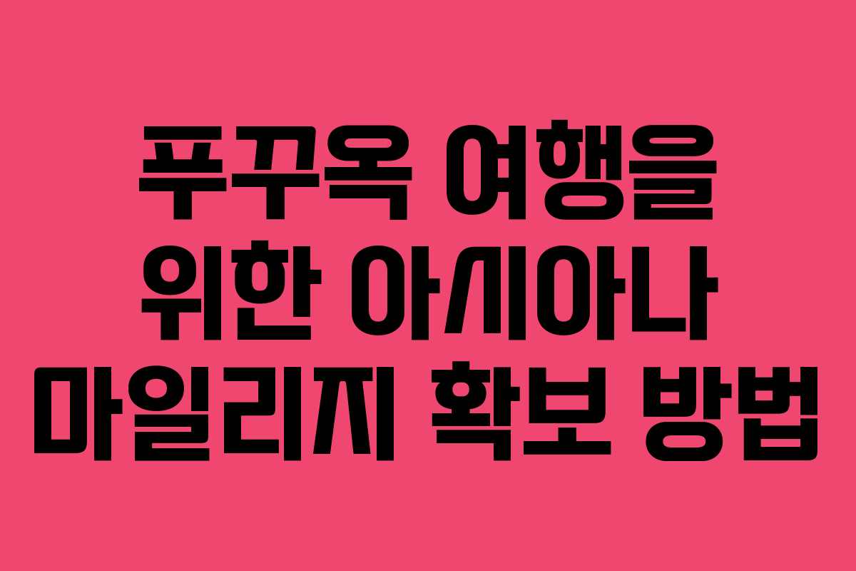 푸꾸옥으로의 여행을 계획하며 항공권 예약을 위한 마일리지 확보가 중요한 과제가 되었습니다. 특히 내년 2분기 여행을 위해 아시아나 항공의 마일리지 부족 문제를 해결할 다양한 방법을 소개합니다.