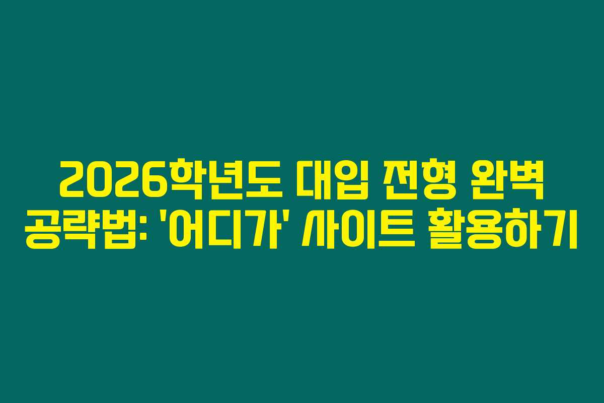 대입 정보zoekers의 필수 아이템인 ‘어디가’ 사이트를 적극 이용해 보세요. 이 사이트는 여러분이 대입 전형을 제대로 이해하고 준비하는 데 도움을 줄 거예요.