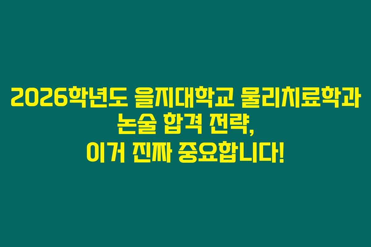 2026학년도 을지대학교 물리치료학과 논술 합격 전략, 이거 진짜 중요합니다!