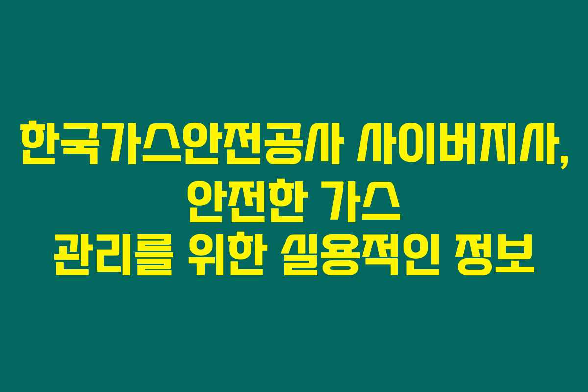 한국가스안전공사 사이버지사는 안전한 가스 관리를 위한 중심 역할을 하고 있으며, 다양한 서비스로 고객들에게 편리한 이용 환경을 제공합니다. 가스 안전에 대한 의식을 높이고, 필요한 정보를 쉽게 접근할 수 있는 중요한 플랫폼이라고 말할 수 있겠죠? 안전한 가스 사용을 위해 항상 주의를 기울이는 것이 중요하답니다!