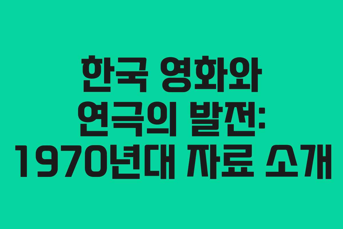 1970년대 한국 영화 및 연극의 발전을 다룬 자료들은 당시의 문화적 흐름을 이해하는 데 중요한 역할을 합니다. 이 글에서는 1970년대에 출간된 한국 영화 및 연극 관련 서적들을 소개하고, 이들 자료가 제공하는 정보와 의미를 살펴보겠습니다.