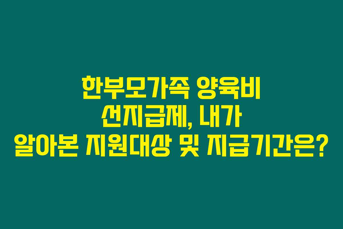 제가 직접 경험해본 결과로는, 양육비 선지급제는 한부모가족이 겪는 양육비 미지급 문제를 해결하기 위해 시행된 제도입니다. 이 제도는 비양육자가 양육비를 지급하지 않을 경우, 국가에서 먼저 양육비를 지급해준 후 추후 비양육자로부터 금액을 징수하는 형태로 진행됩니다. 이는 한부모 가정의 경제적 부담을 덜어주고, 아이들이 안정적인 환경에서 성장할 수 있도록 돕기 위한 매우 중요한 시스템이라고 할 수 있습니다.