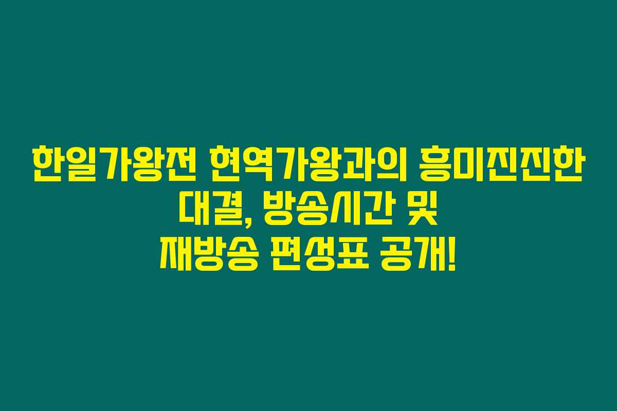 한일가왕전은 세계 최초의 국가 대항 노래 대결로, 많은 팬들이 힐링하고 즐길 수 있는 프로그램이 될 거예요. 이 기회를 통해 소중한 시간 만들어보세요!