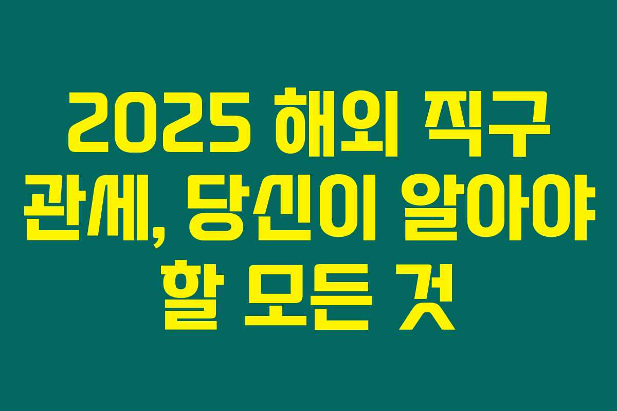 2025년 해외 직구를 계획하고 계신가요? 직구는 언제나 매력적이죠. 그러나 예상치 못한 추가 비용인 관세와 부가세를 주의해야 해요. 아래를 읽어보시면, 2025년 해외 직구에 적용되는 최신 관세 기준과 면세 한도, 세금 계산 방법에 대한 유용한 정보를 가져가실 수 있습니다.