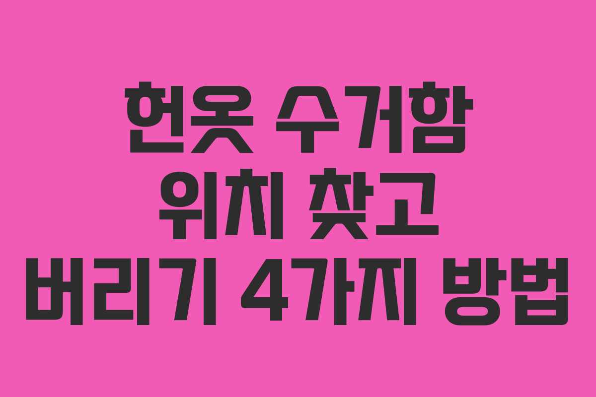 여름철이 다가오면서 옷 정리의 필요성이 커지고 있습니다. 헌옷을 버릴 때는 헌옷 수거함을 이용하는 방법이 유용합니다. 여기서는 헌옷 수거함을 찾는 방법과 헌옷을 버리는 다양한 방법을 소개하겠습니다.