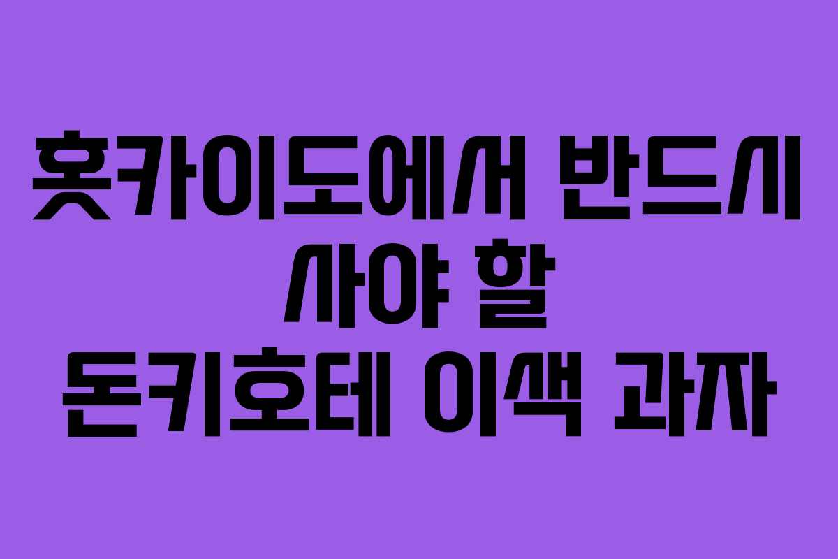 일본 여행 중 돈키호테 매장은 꼭 들러야 하는 필수 코스입니다. 특히 홋카이도 지역에서만 맛볼 수 있는 특색 있는 과자들은 여행의 즐거움을 더해줍니다. 이번 포스팅에서는 홋카이도에서 꼭 사야 할 두 가지 이색 과자를 소개하겠습니다.