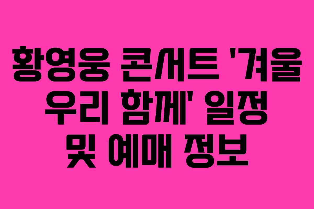 황영웅의 콘서트 ‘겨울 우리 함께’에서 그의 열정적인 무대와 감동적인 음악을 즐기며 특별한 추억을 만들어보시기 바랍니다.