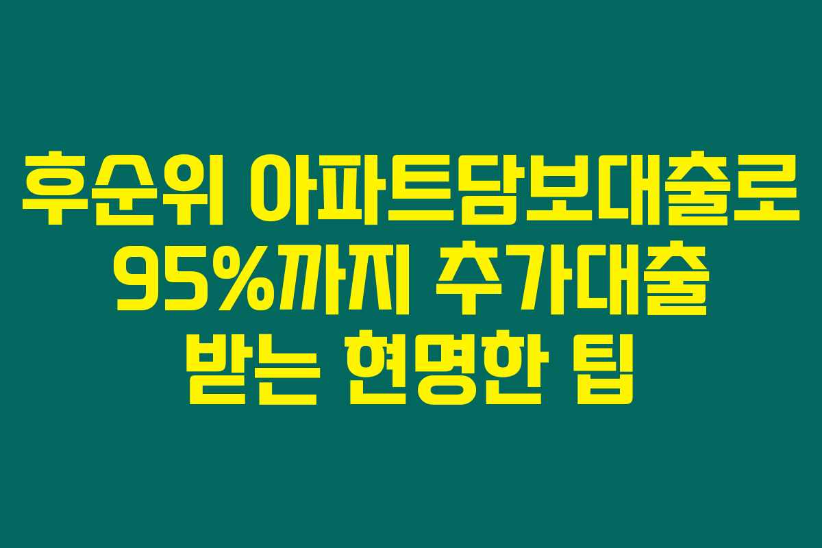 기존 선순위 대출을 제외하고, 아파트 시세의 최대 95%까지 추가 대출을 받을 수 있습니다.