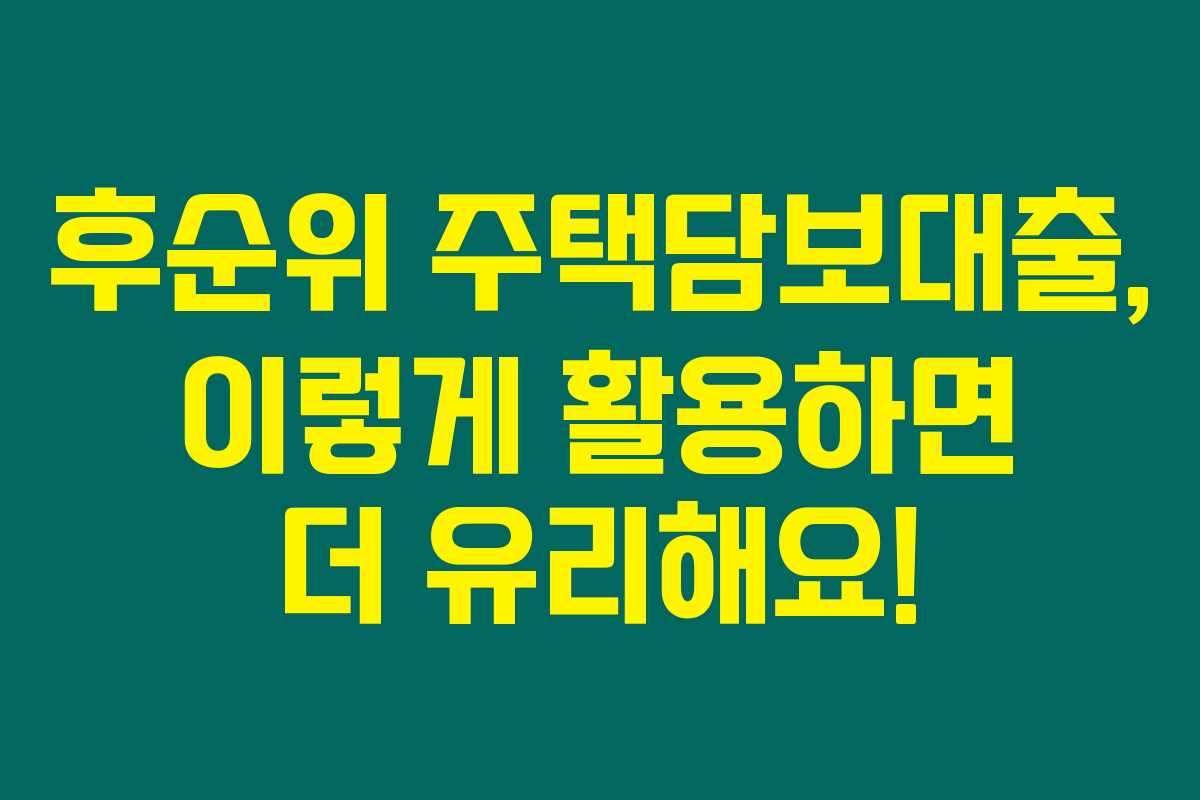 후순위 주택담보대출은 자산을 활용해 추가 자금을 확보할 수 있는 장점이 있어요. 갑작스럽게 자금이 필요할 때 유용하게 사용할 수 있지만, 리스크도 존재하답니다.