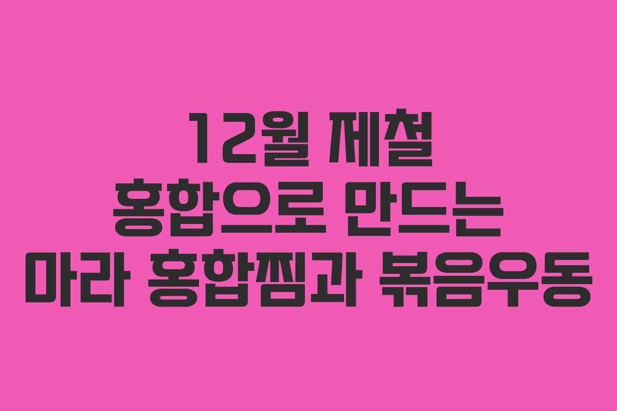 12월은 홍합이 제철인 시기로, 다양한 요리에 활용할 수 있습니다. 특히 마라소스를 활용한 홍합찜과 볶음우동은 매콤하고 풍부한 맛으로 인기 있는 메뉴입니다. 이번 포스트에서는 쉽게 따라 할 수 있는 레시피를 소개합니다.