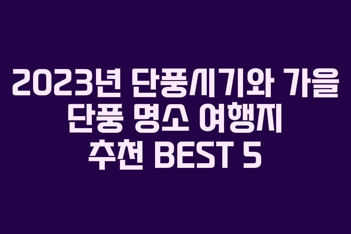 2023년 단풍시기와 가을 단풍 명소 여행지 추천 BEST 5
