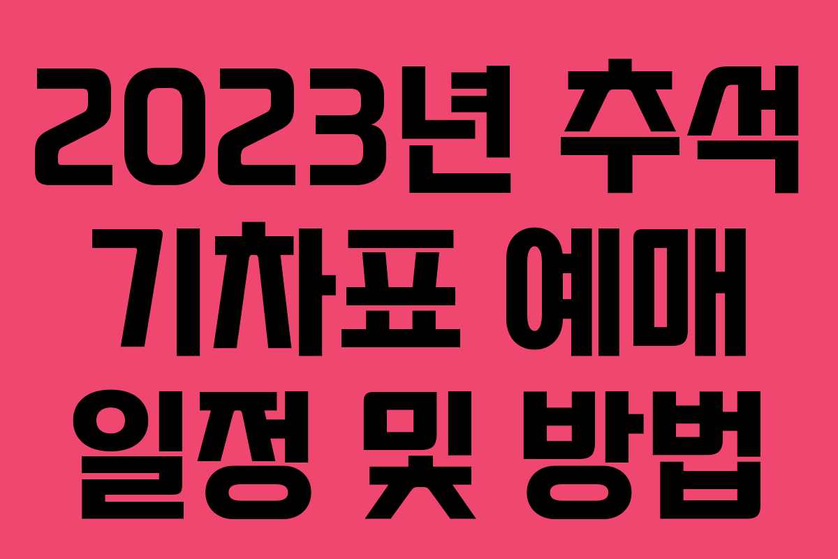 2023년 추석 명절을 맞아 기차표 예매가 시작됩니다. 한국철도공사(코레일)는 KTX, 새마을호, 무궁화호 등 모든 열차의 승차권을 비대면 방식으로 판매합니다. 예매는 8월 29일부터 31일까지 진행되며, 이 기간 동안 다양한 방법으로 예매할 수 있습니다.