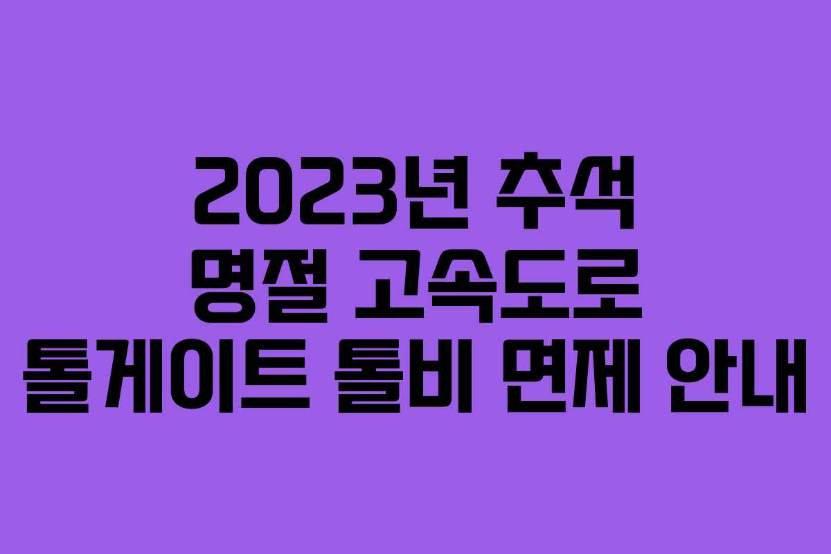 2023년 추석 명절을 맞아 고속도로를 이용하는 모든 차량에 대해 톨비 통행료가 면제됩니다. 이번 기회를 통해 부담 없이 고속도로를 이용하여 가족과 함께 즐거운 시간을 보내세요.