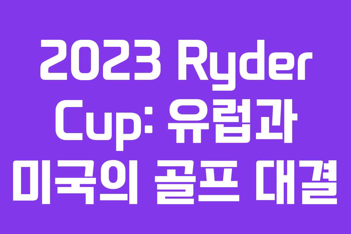 2023 Ryder Cup: 유럽과 미국의 골프 대결