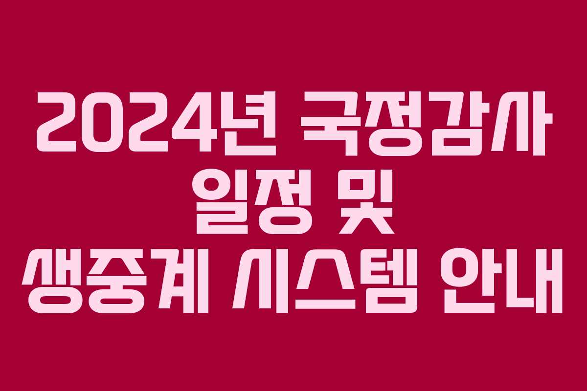 2024년 국정감사가 10월 7일부터 10월 29일까지 진행됩니다. 이번 글에서는 10월 7일부터 10월 16일까지의 국정감사 일정과 생중계 시스템에 대해 소개합니다.