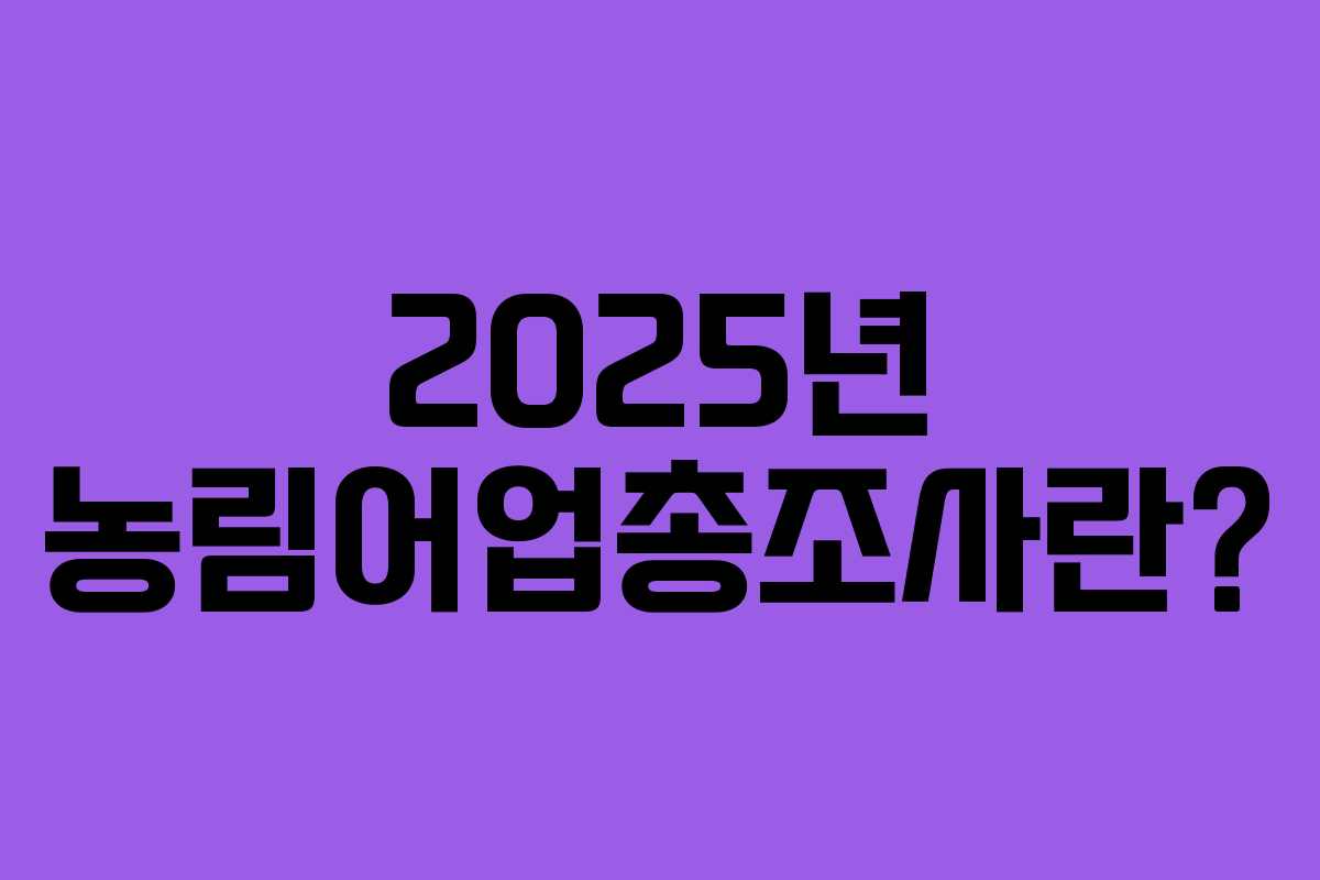 2025 농림어업총조사는 농림어업 분야의 모든 가구와 사업체를 대상으로 합니다. 이는 농업에 종사하는 농가뿐만 아니라, 임업과 어업에 관련된 다양한 주체들을 포함합니다.