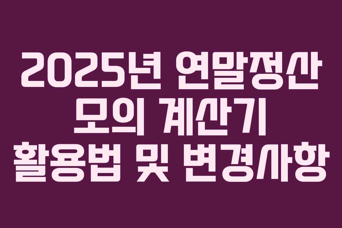 연말정산은 직장인들에게 매우 중요한 세금 정산 과정입니다. 2025년도 연말정산 시즌이 다가오면서, 미리 세액을 예상해 볼 수 있는 연말정산 모의 계산기의 활용 방법과 주요 변경 사항에 대해 알아보겠습니다.