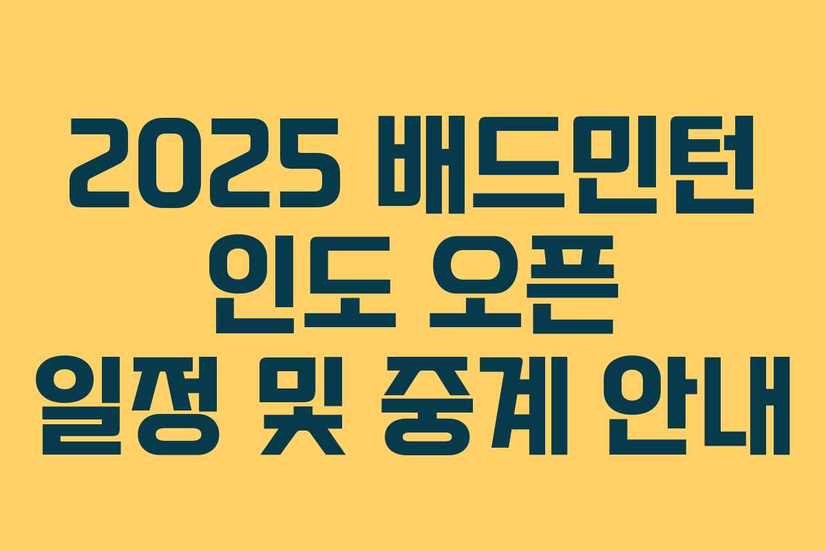 2025 배드민턴 인도 오픈에 대한 정보가 궁금하신가요? 이번 대회는 한국의 안세영 선수가 출전하며, 일정과 중계 정보를 아래에서 자세히 확인해 보세요.