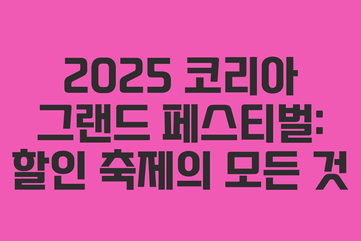 2025년 10월 29일부터 11월 9일까지 진행되는 2025 코리아 그랜드 페스티벌은 전국적으로 펼쳐지는 대규모 쇼핑 이벤트입니다. 이 기간 동안 전통시장, 대형마트, 백화점, 온라인 쇼핑몰에서 다양한 할인 혜택을 누릴 수 있습니다.