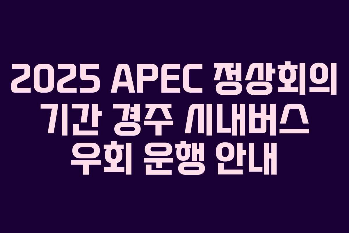 2025 APEC 정상회의는 경주에서 열리는 중요한 국제 행사로, 이에 따라 경주 시내버스의 일부 노선이 임시로 우회 운행됩니다. 이 글에서는 시내버스 우회 노선과 실시간 교통정보를 확인하는 방법에 대해 안내드리겠습니다.
