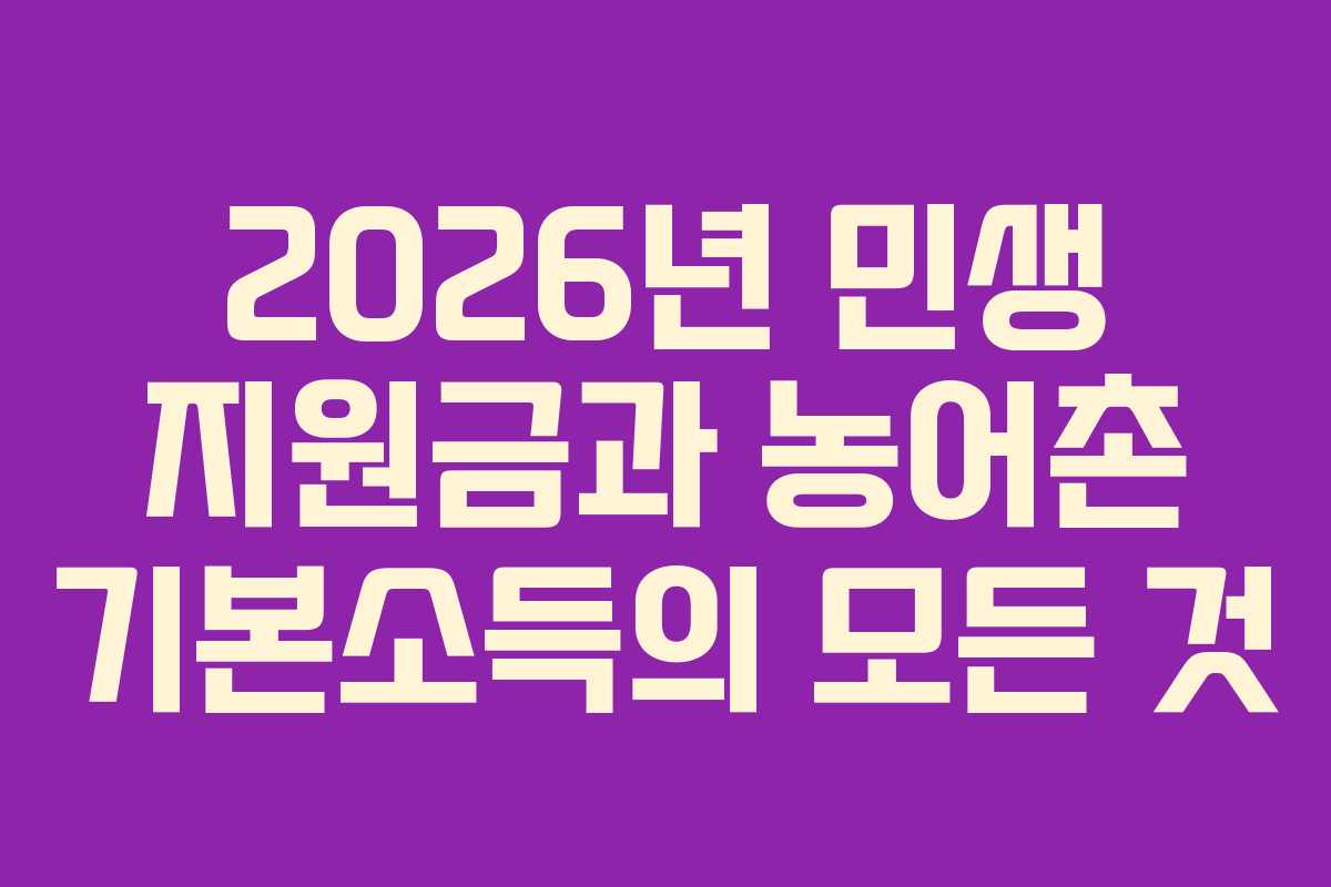 2026년에는 다양한 민생 지원금과 농어촌 기본소득이 지급될 예정입니다. 각 지역별로 지원금의 액수와 신청 방법이 다르기 때문에, 자칫 놓치기 쉬운 중요한 정보들을 정리해 드리겠습니다. 이 글을 통해 각 지역의 지원금과 유의사항을 자세히 알아보세요.