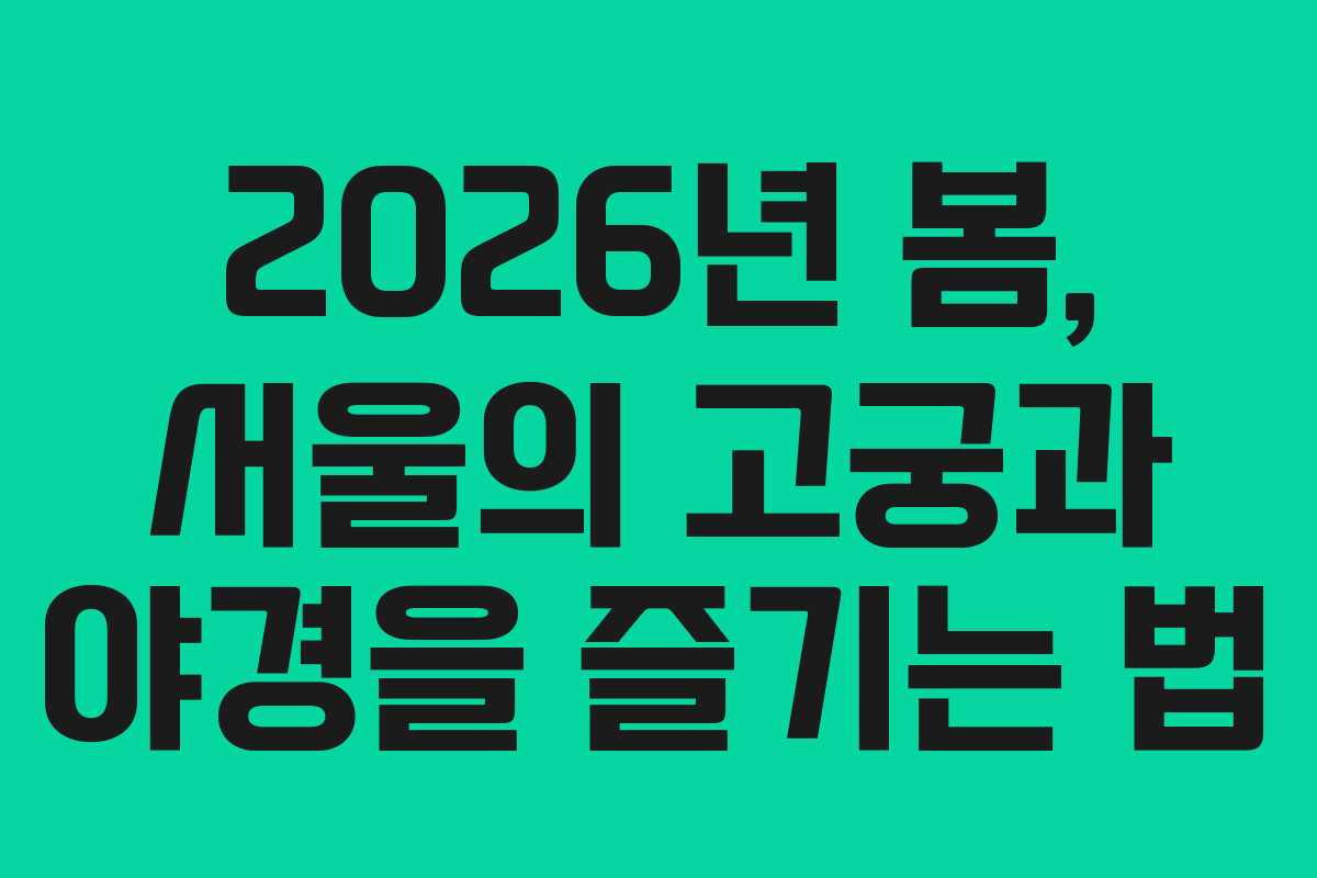 봄의 따스한 날씨가 찾아오면서 서울의 고궁과 고즈넉한 장소들이 더욱 매력적으로 다가옵니다. 이 시기에 맞춰 서울의 대표적인 고궁들을 탐방하며 아름다운 자연과 역사적 유산을 만끽할 수 있는 기회를 제공하고자 합니다. 2026년 현재의 다양한 일정과 특색 있는 프로그램을 통해 잊지 못할 추억을 만들어보세요.