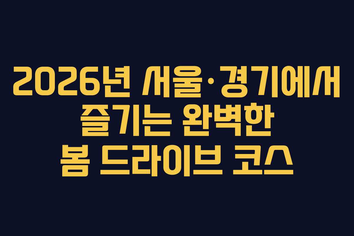 봄이 다가오며 드라이브를 즐기고 싶은 마음이 커지는 시기입니다. 특히 육아에 지친 부모들에게는 아이와 함께하는 드라이브가 큰 힐링이 될 수 있습니다. 서울과 경기도에서는 아름다운 풍경과 함께 특별한 드라이브 코스를 즐길 수 있는 기회를 제공합니다. 이번 글에서는 2026년 봄을 만끽할 수 있는 서울·경기 지역의 드라이브 코스를 소개합니다.